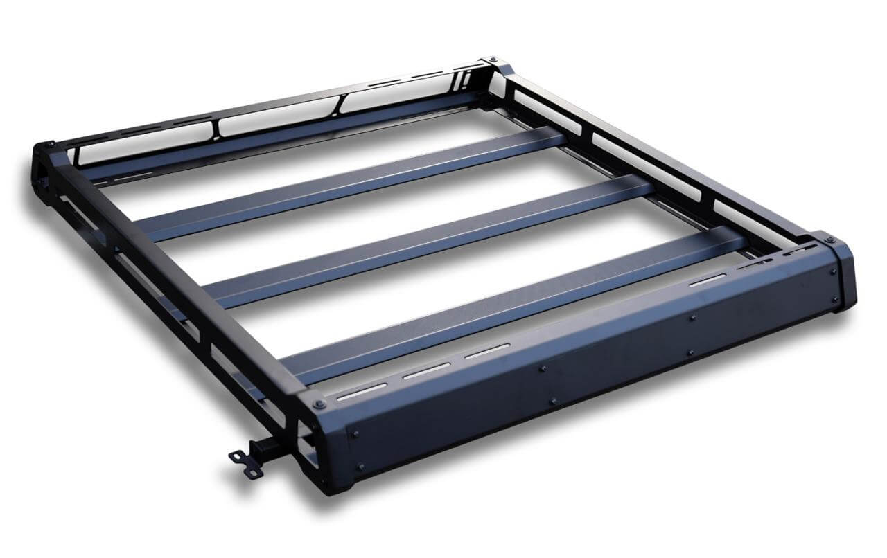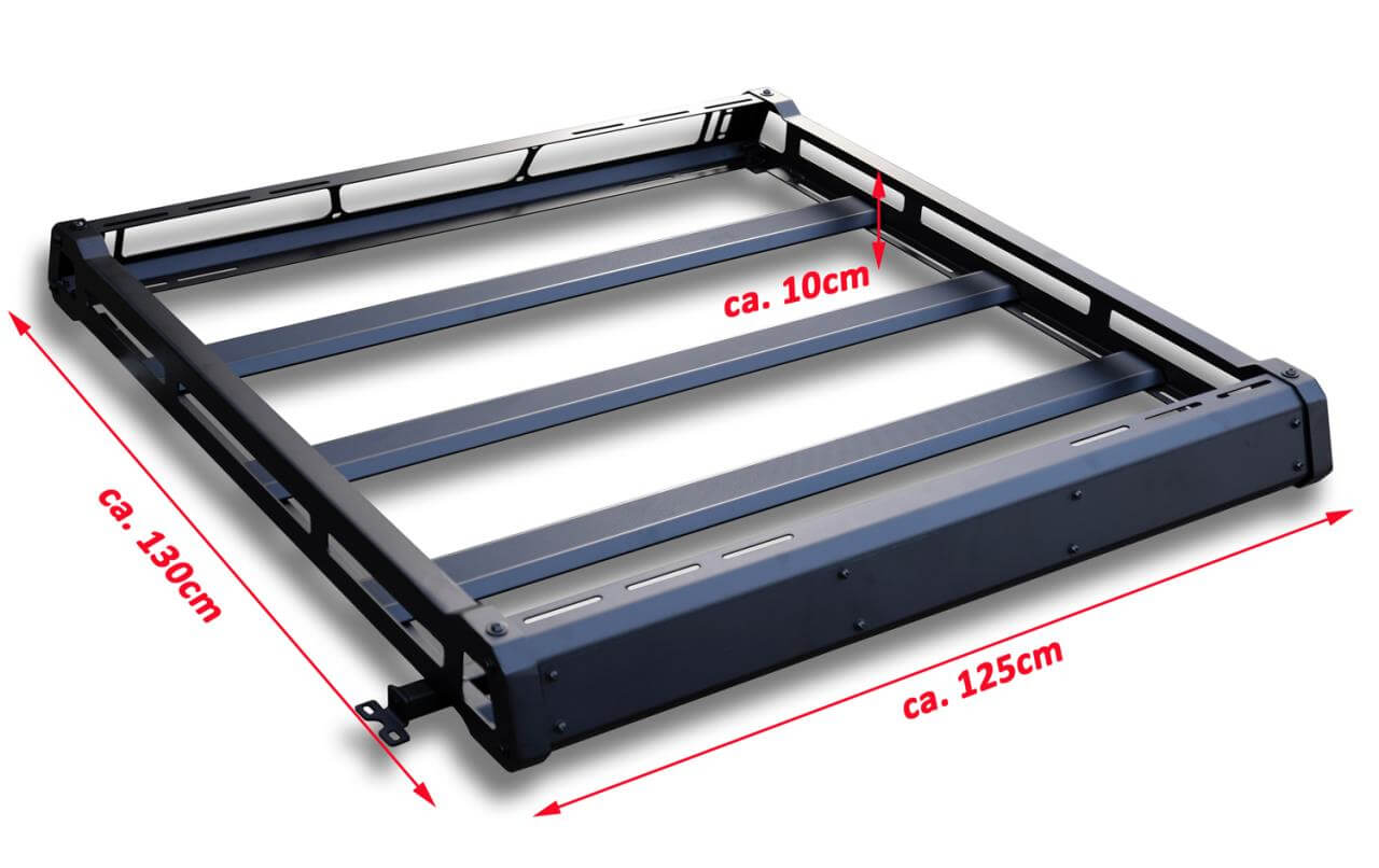 Deiser Pulverbeschichteter, robuster Dachgepäckträger im "Black Rock" Design. Die stabile Ausführung sorgt für eine sichere Belastbarkeit.
