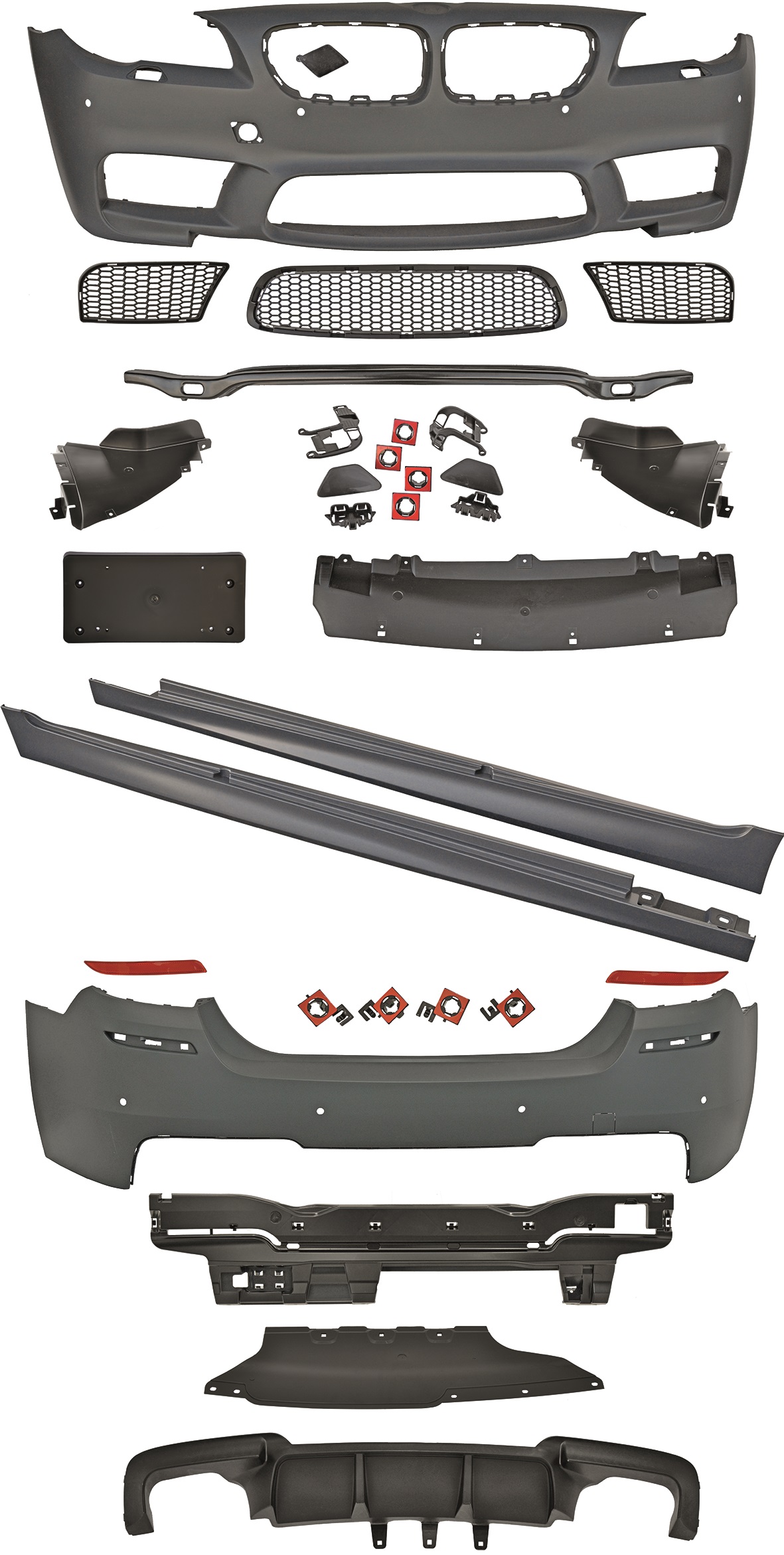 inklusive Zubehör: Stoßstangengitter Mittig , Rechts und Links, Strebe, 4x PDC Halter + zusätzlichen Klebstoff, SRA Abdeckungen, Abschleppkappe und Anbaumaterial wie abgebildet